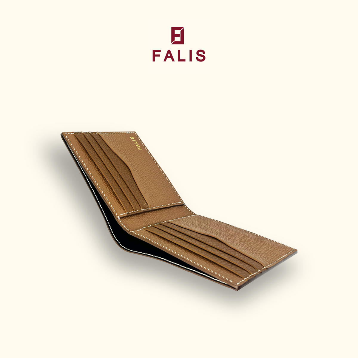 Ví Da Bò Thủ Công FALIS Classic 006 – Da Mill Korea Màu Hổ Phách